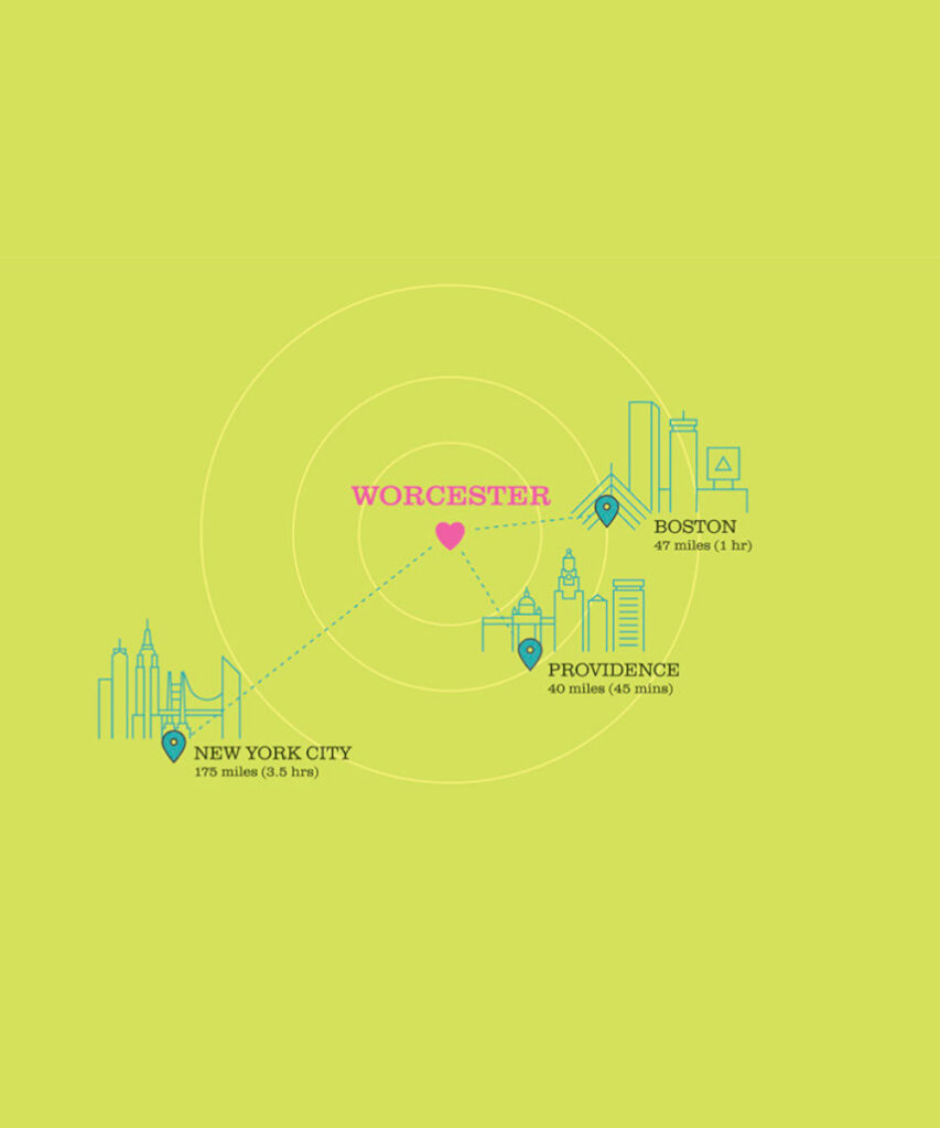Our students benefit from Worcester’s proximity to Boston, Providence, even New York — and the abundant opportunities for entertainment, internships, and careers within our home city and beyond.