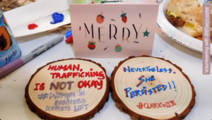 Vaishali was told that LIFT was looking for volunteers for its “Lift Up the Holidays” fundraiser, and she jumped at the chance. Together with six other members of the Women in Business club, they attended the event to support LIFT’s leadership with logistical matters, and perhaps more importantly, engage with victims through conversation and crafting activities.