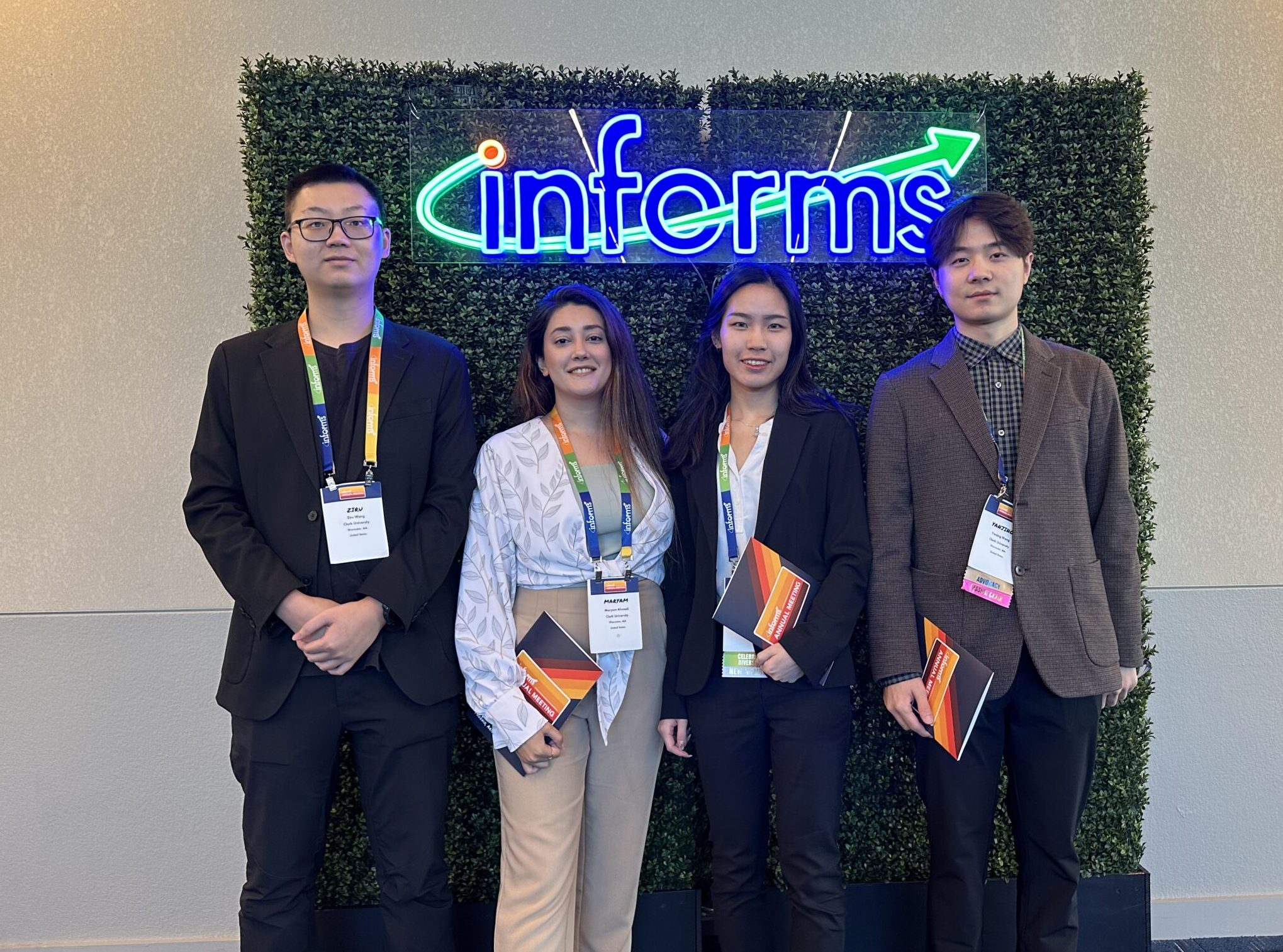 Sitting in their analytics courses last year, a group of School of Business students hardly expected their research projects to lead them to presenting at an international conference. But that’s exactly what happened for MS-marketing analytics student Jamie Wang, and MS-business analytics students Ziru Wang, Yanjing Wang, and Maryam Ahmadi this fall, as all of them took part in the 2023 INFORMS conference in Phoenix, Arizona.