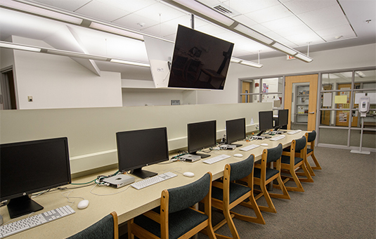 The Media Arts Study Hub, located on the second floor of the Traina Center for the Arts, is an open study space equipped with a wide array of modern and legacy technology. It houses the departmental media collections, which encompass current-use and archival material.