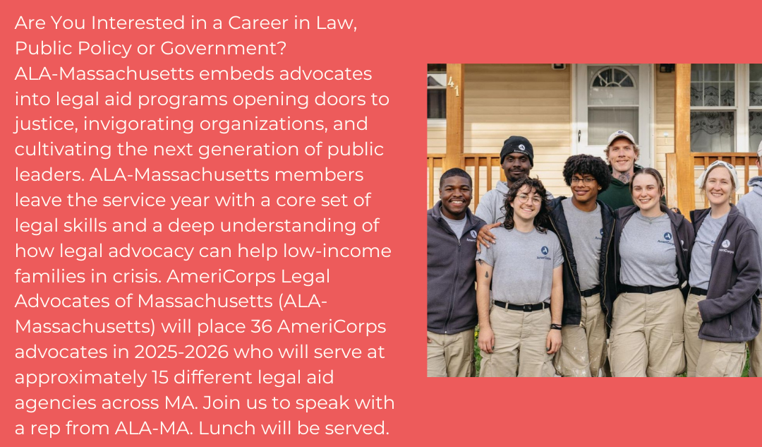 Are you interested in a career in law, public policy, or government? ALA–Massachusetts embeds advocates into legal aid programs — opening doors to justice, invigorating organizations, and cultivating the next generation of public leaders. |
