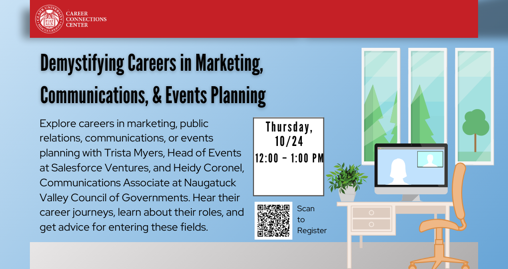 Explore careers in marketing, public relations, communications, or events planning with Trista Myers, Head of Events at Salesforce Ventures, and Heidy Coronel, Communications Associate at Naugatuck Valley Council of Governments. Hear their career journeys, learn about their roles, and get advice for entering these fields.