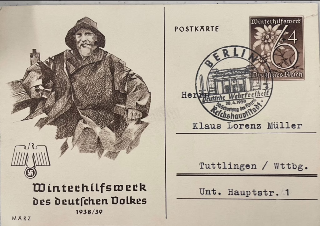 Winter Relief Fund of the German Volke 1938/39, November.