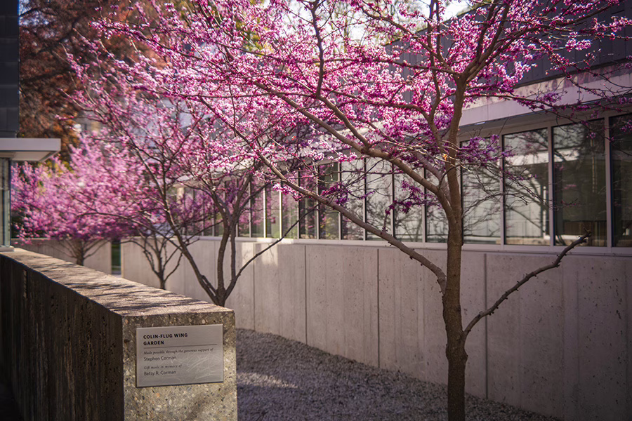 The Colin Flug Graduate Study Wing is a handsome addition to the complex that comprises the Center; together, Cohen-Lasry House, the Rose Library, the Chaifetz Jakubowitz Garden, the Freedman Courtyard and the Colin Flug Wing constitute a mini campus oriented towards Clark’s main quad. The Siff Exhibition space will eventually become an accessible entrance lobby. A major gift from the Strassler family funded compact shelving adequate for holding more than 10,000 volumes. Stephen Corman (in memory of Betsy Corman), Lisa ’82 and Michael ’81 Leffell, Susan Rein along with the family and friends (in memory of Herbert Rein), Erica Rhine ’67, and Al Tapper donated offices that seat four students. Rosalie Rose (in memory of Sidney Rose) and many others responded enthusiastically to the project with contributions in honor of Founding Director Professor Debórah Dwork. A garden, in memory of Betsy Corman, reminds us that following death and destruction, there is rebirth.