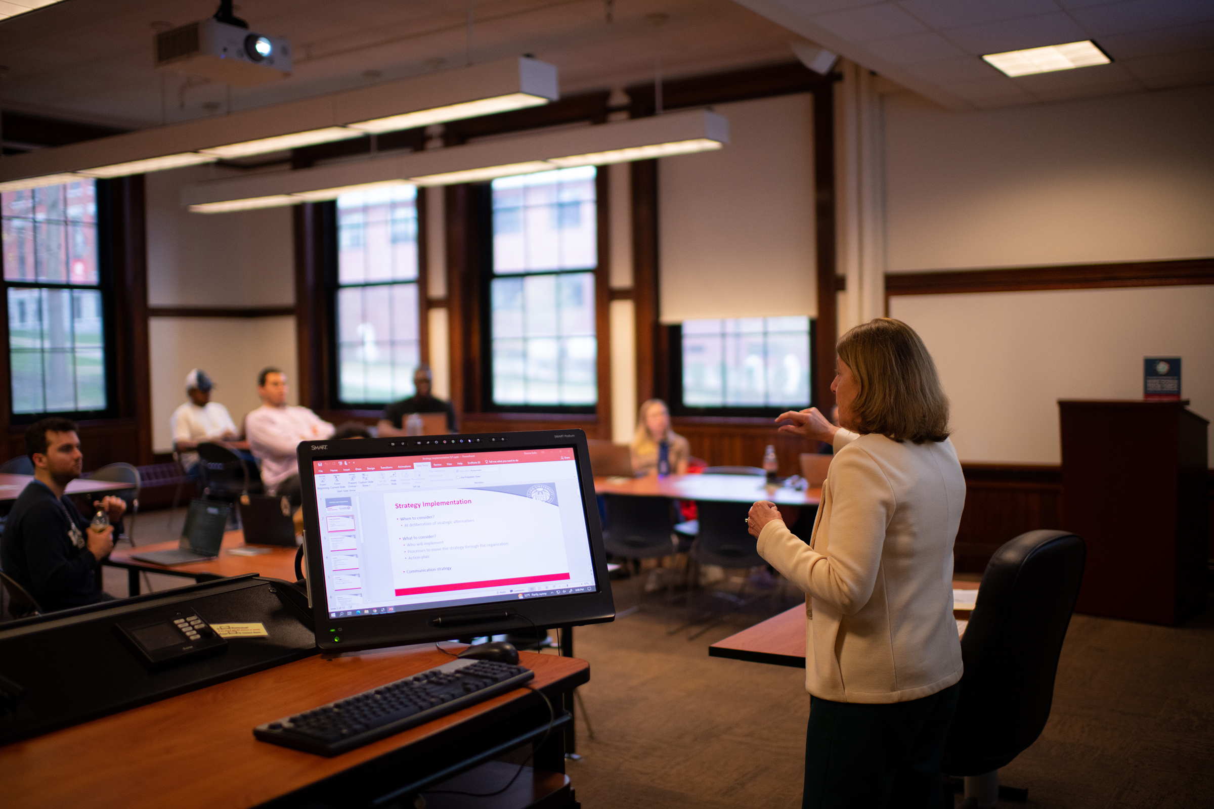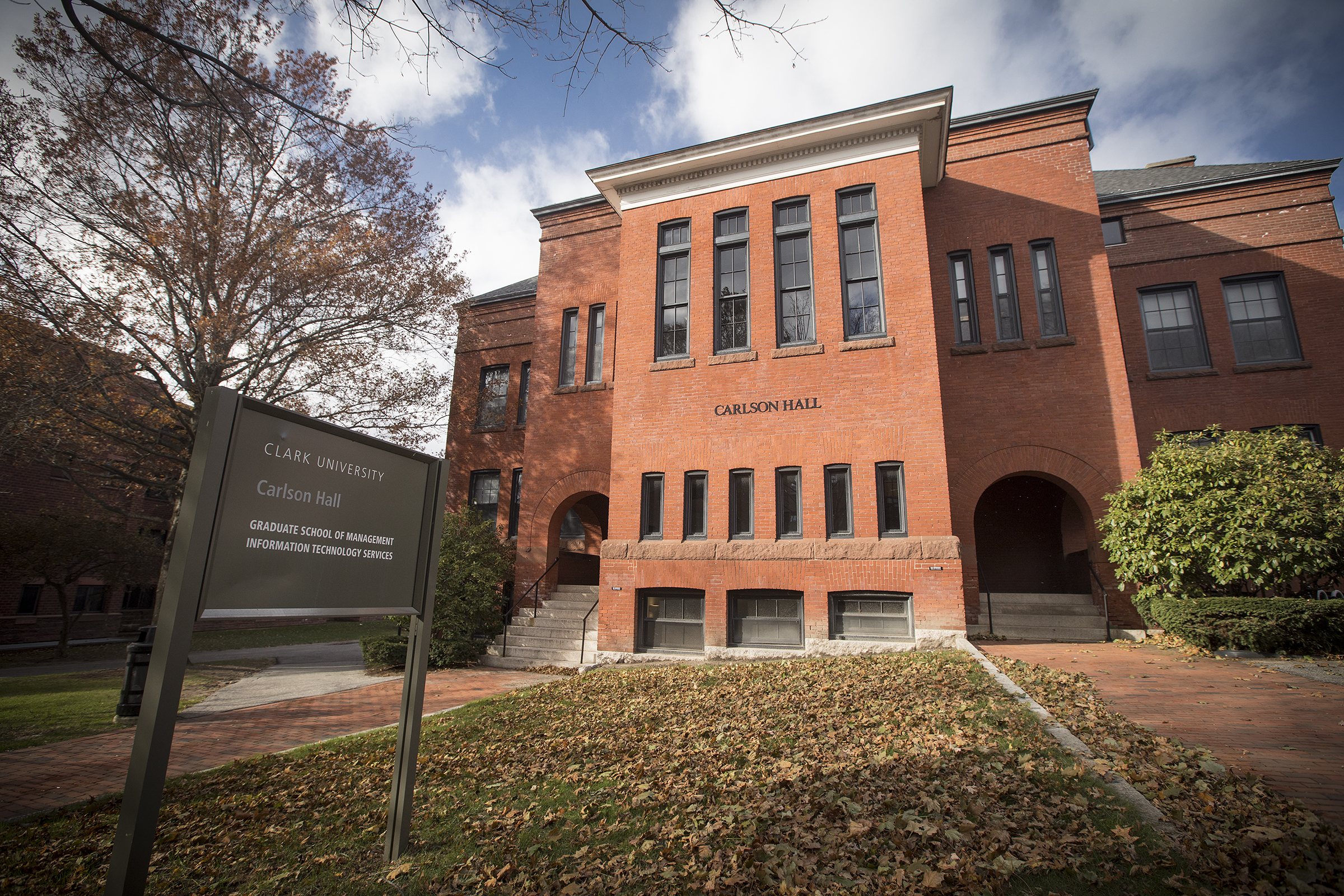 Carlson Hall is home to the Clark University School of Business, which offers undergraduate programs in management, marketing, and entrepreneurship and innovation, along with accelerated B.A./master’s in business and finance; and graduate degrees in business administration, finance, marketing, analytics, and more. Also located in Carlson Hall are the administrative and infrastructure offices of Information Technology Services.