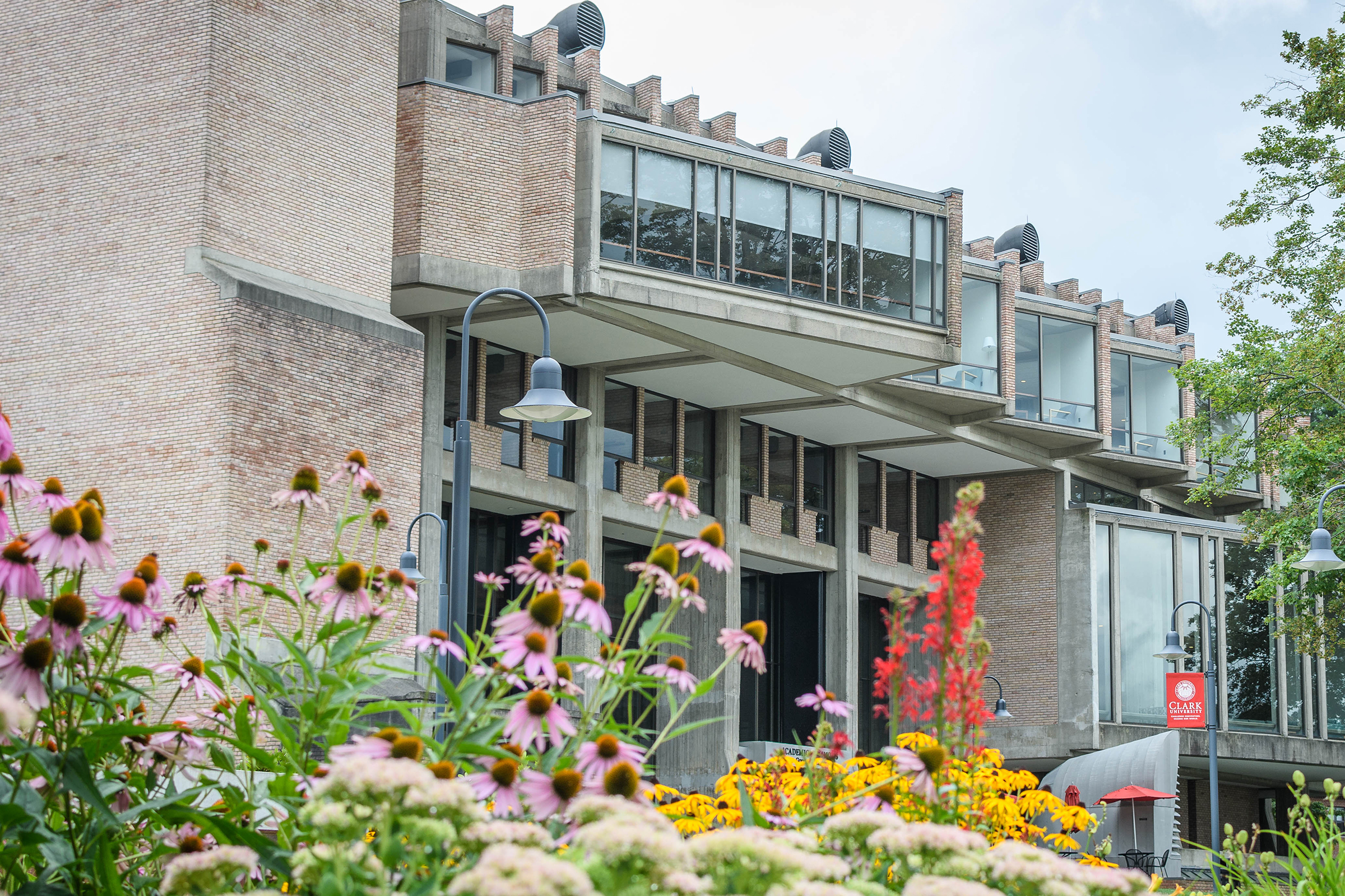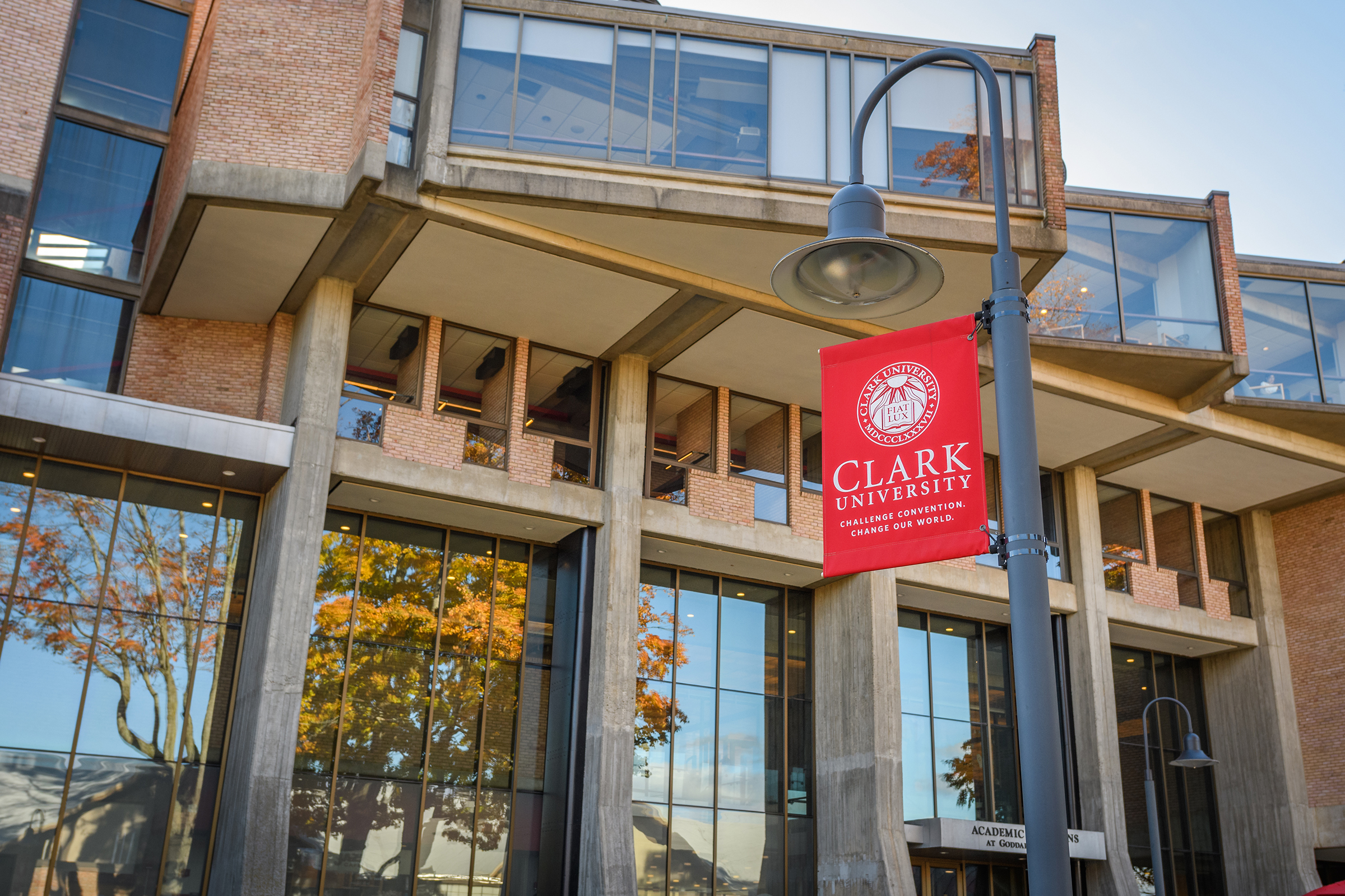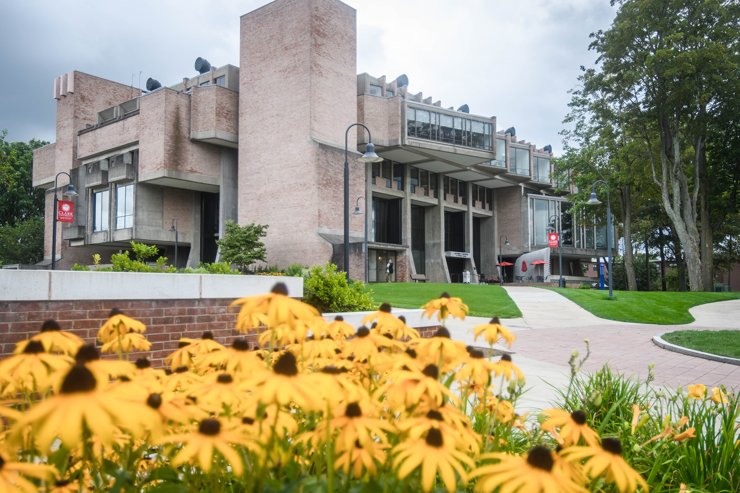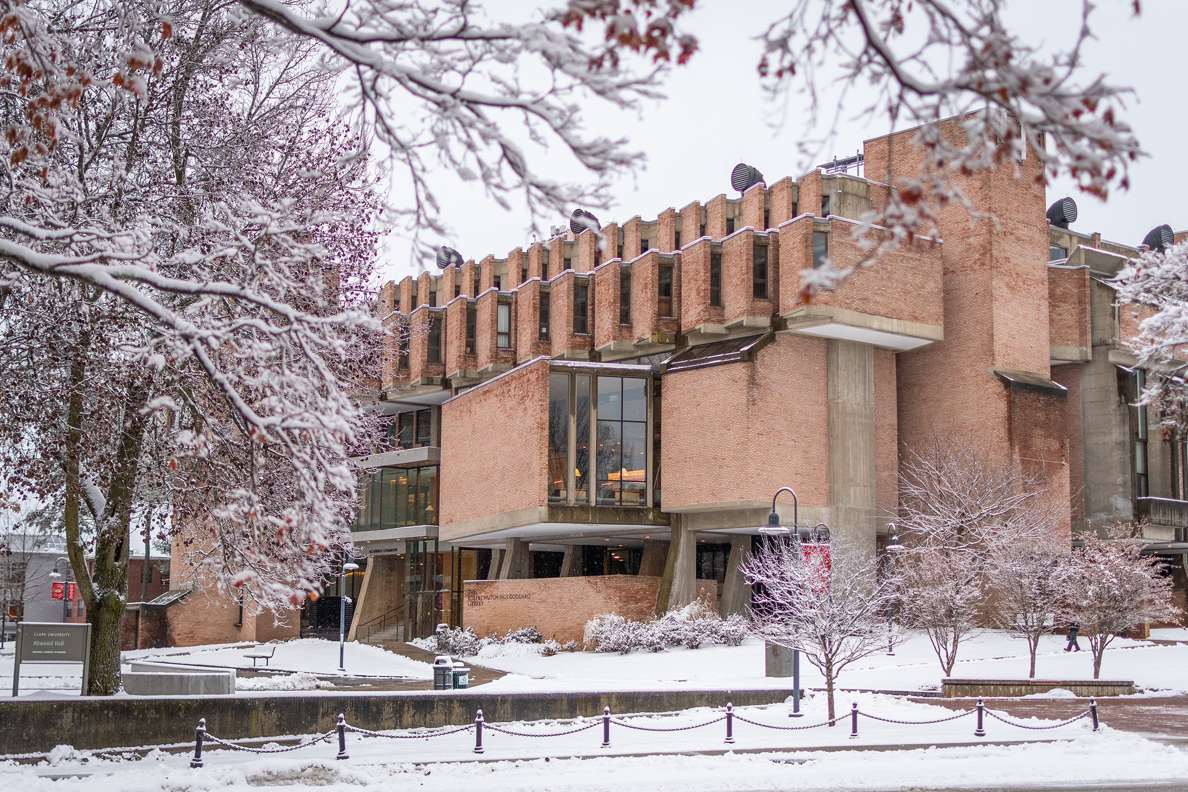 With nearly half a million books, periodicals, and research materials, and four floors of quiet study and research spaces, the Robert Hutchings Goddard Library — named for the Clark physicist known as the father of the space age — is the center of academic life at Clark. On the first floor, you’ll find the Academic Commons, a bustling area for group study or catching up with friends, as well as the ITS Help Desk, Archives and Special Collections, the Office of Academic Support, the Writing Center, quiet study lounges, a computer lab, and Jazzman’s Café.