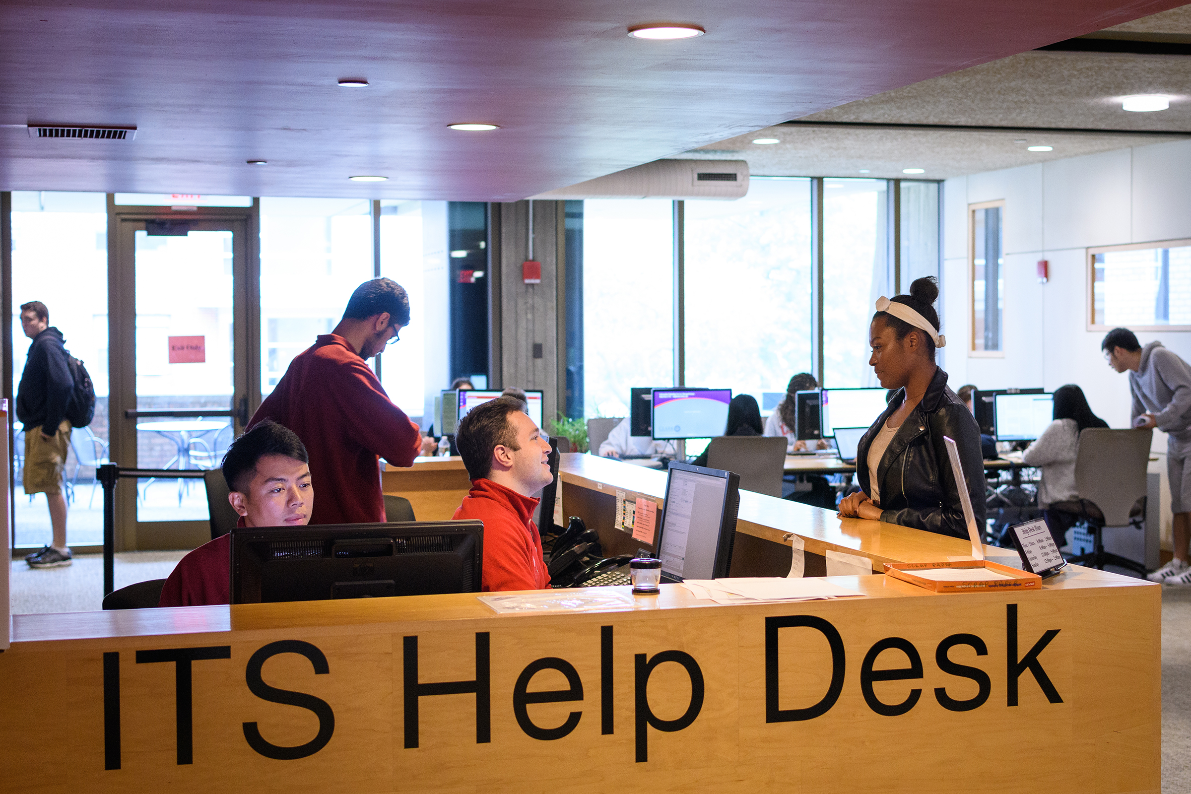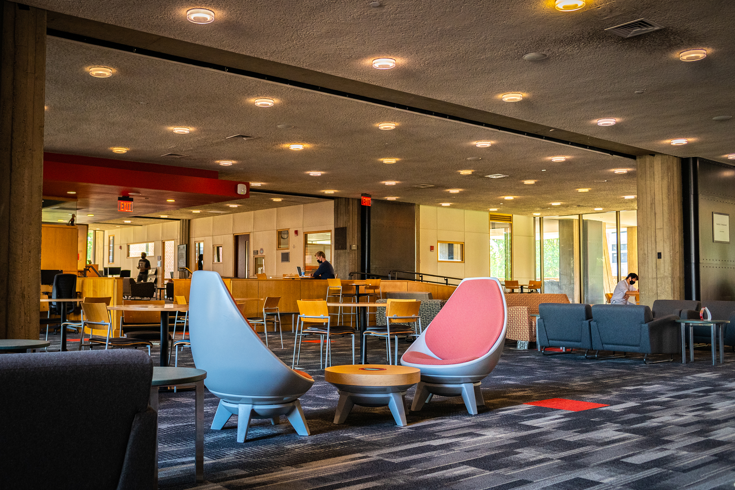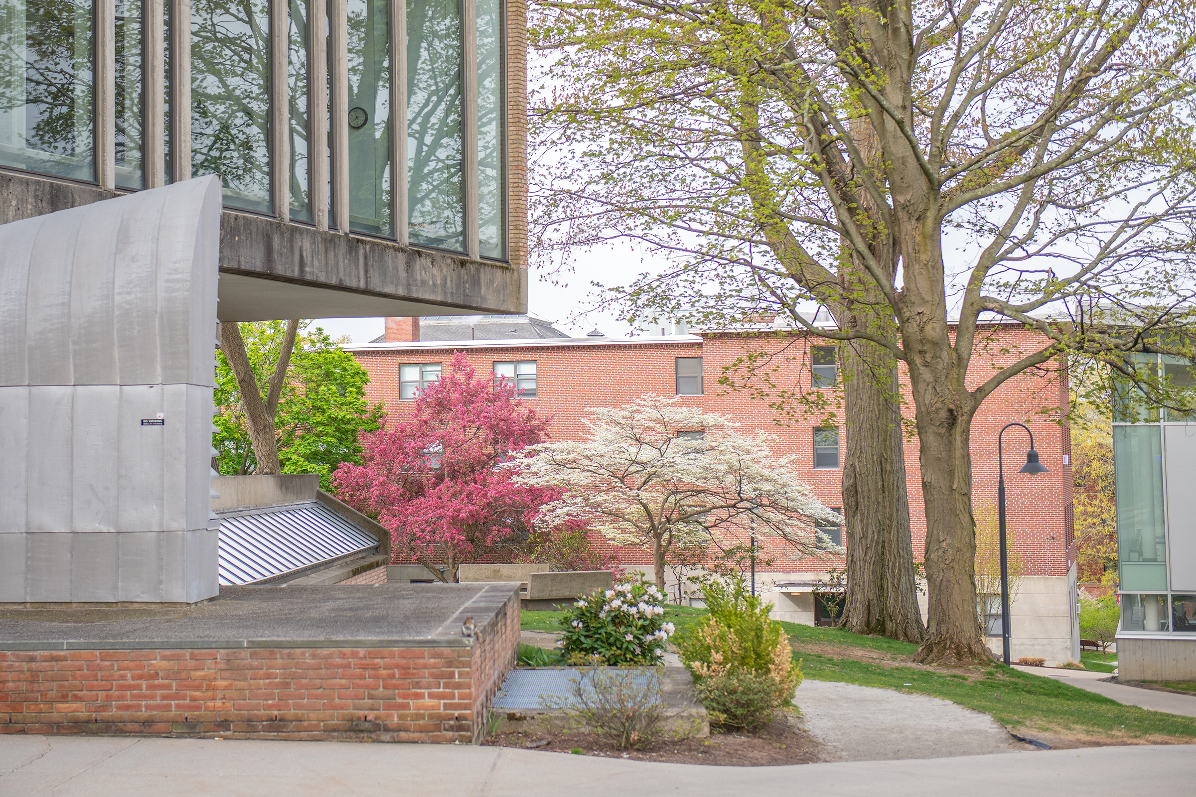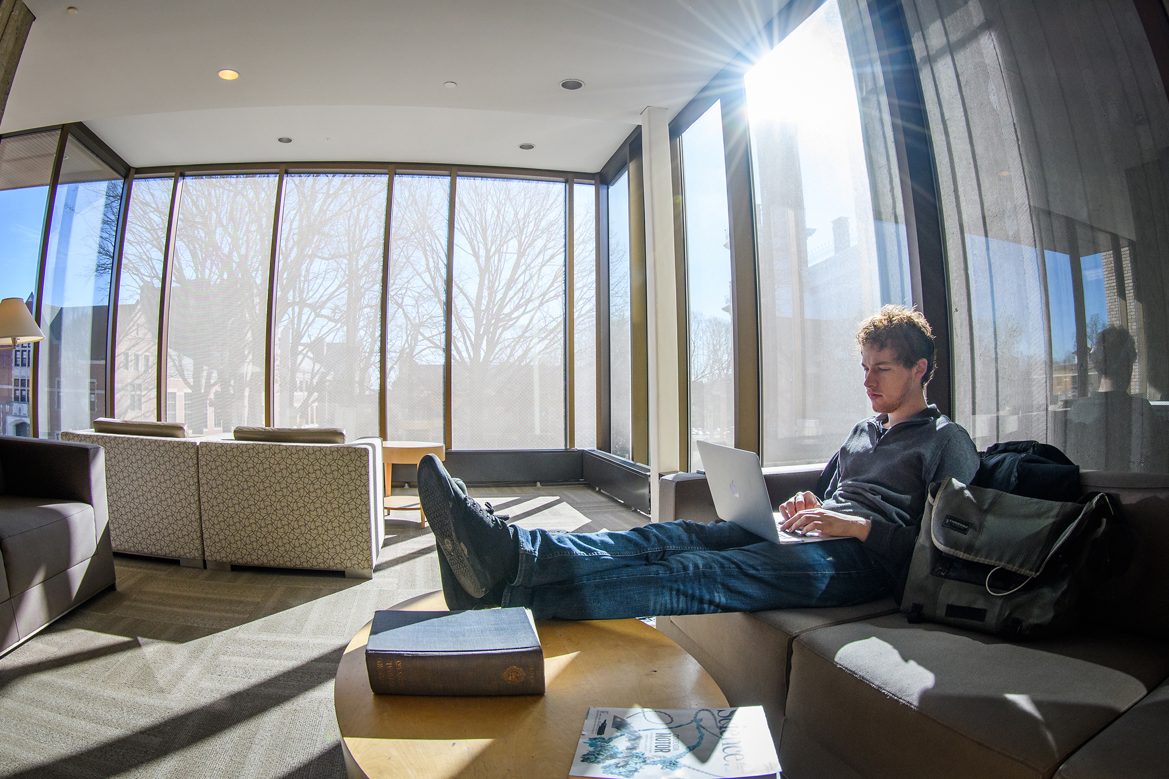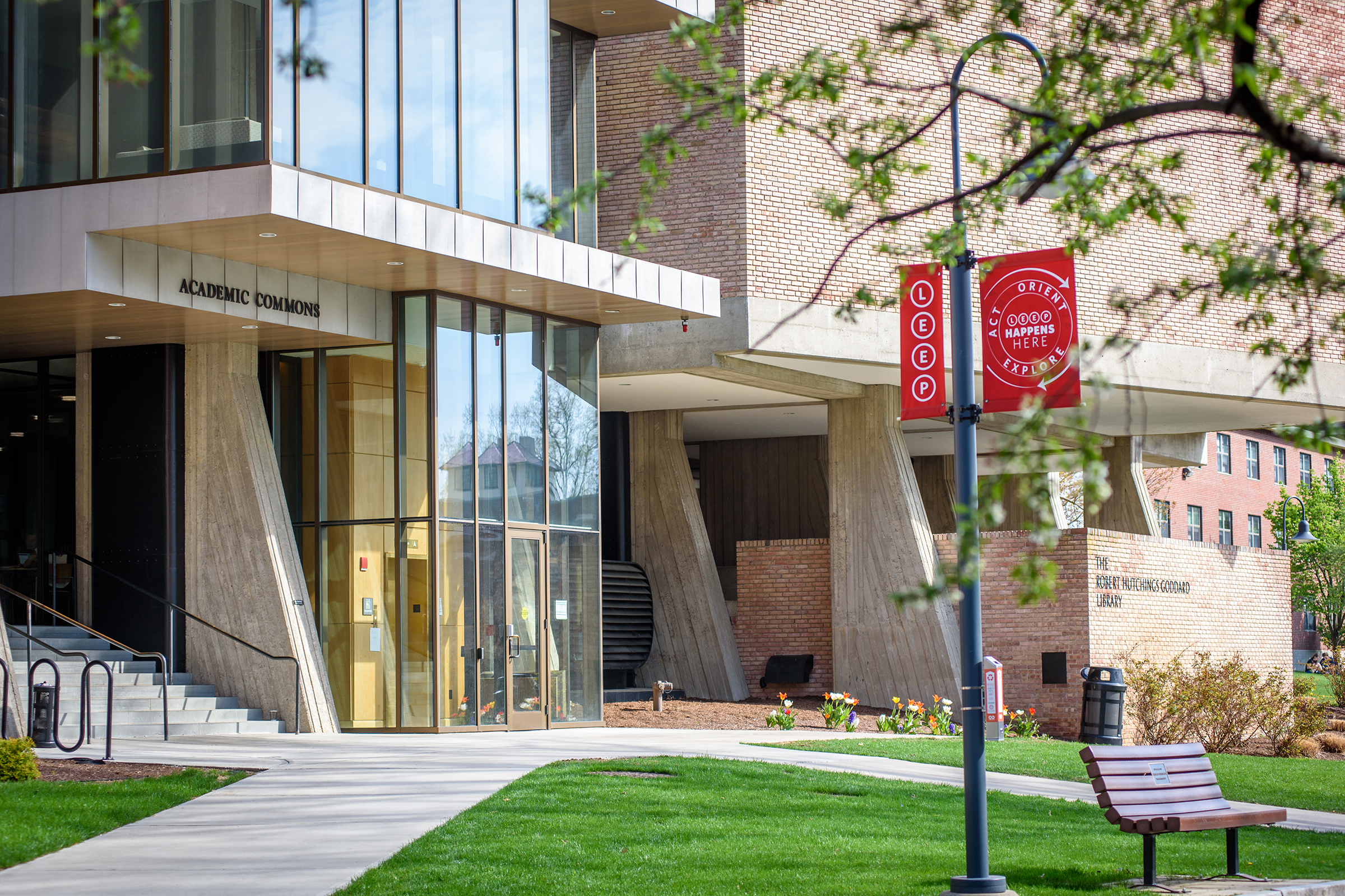 With nearly half a million books, periodicals, and research materials, and four floors of quiet study and research spaces, the Robert Hutchings Goddard Library — named for the Clark physicist known as the father of the space age — is the center of academic life at Clark. On the first floor, you’ll find the Academic Commons, a bustling area for group study or catching up with friends, as well as the ITS Help Desk, Archives and Special Collections, the Office of Academic Support, the Writing Center, quiet study lounges, a computer lab, and Jazzman’s Café.