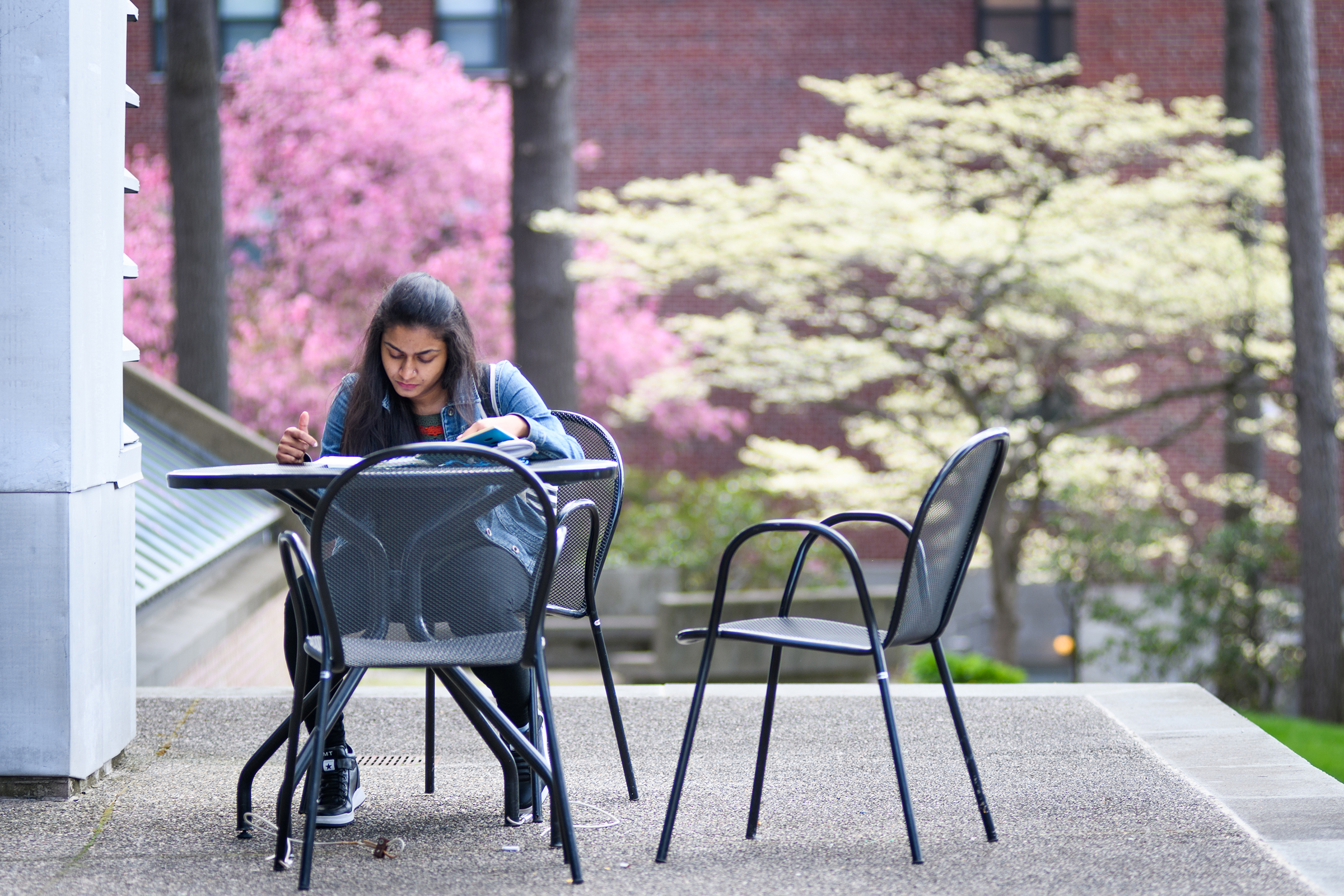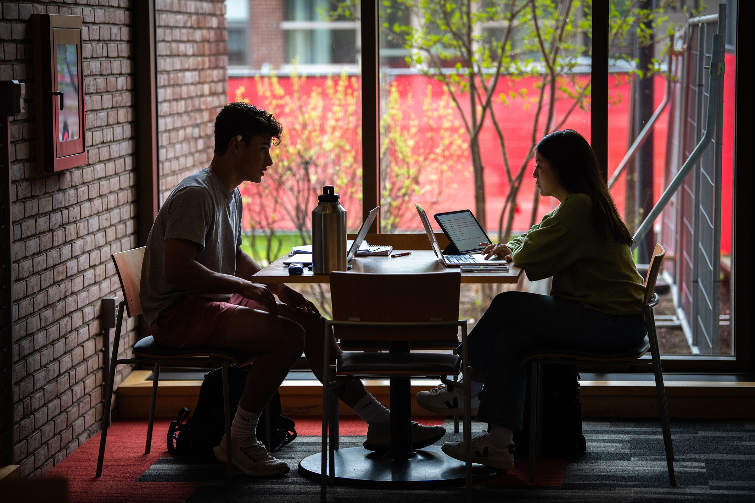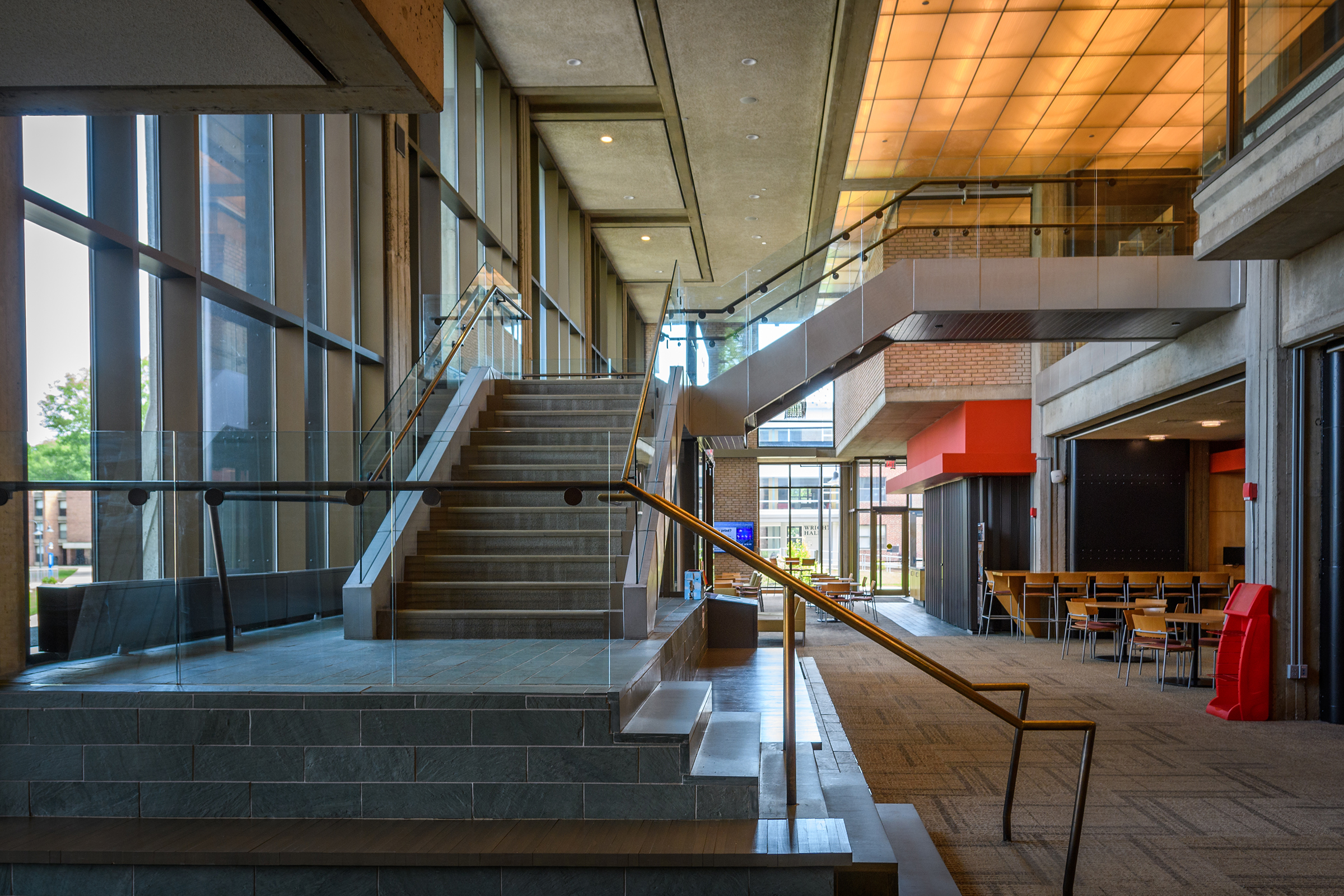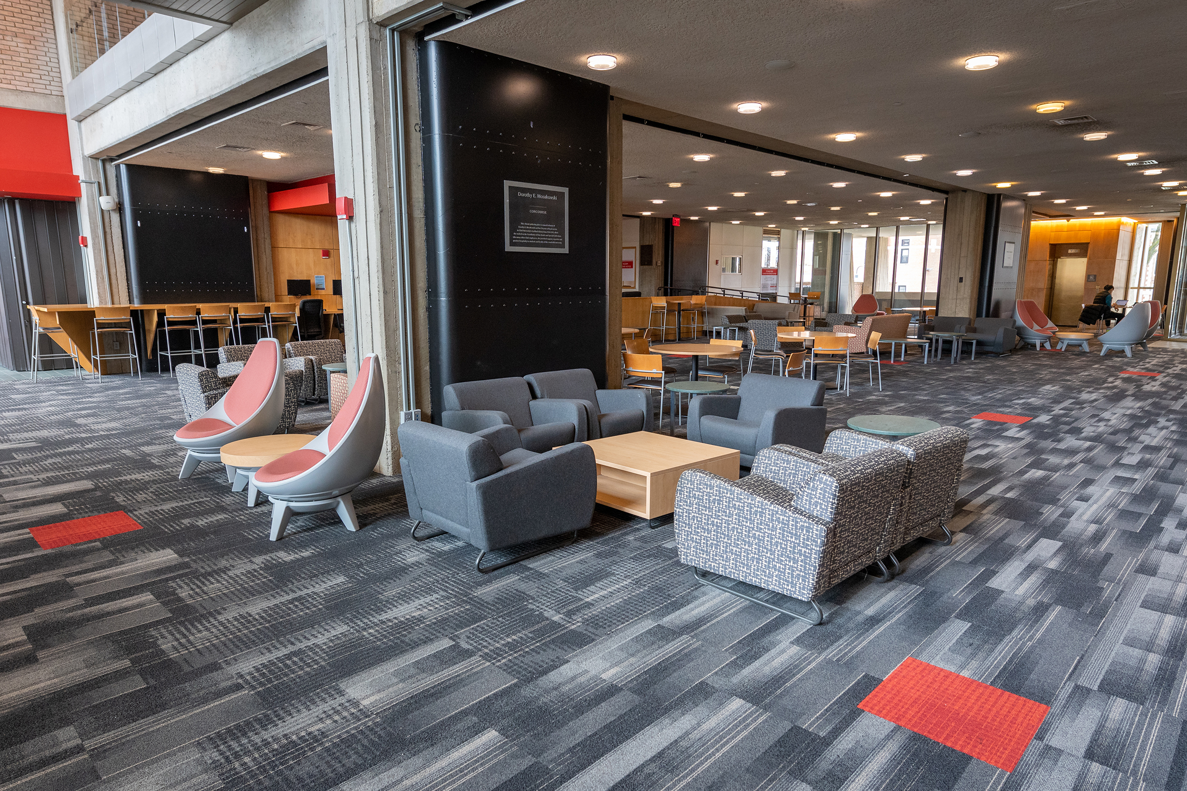With nearly half a million books, periodicals, and research materials, and four floors of quiet study and research spaces, the Robert Hutchings Goddard Library — named for the Clark physicist known as the father of the space age — is the center of academic life at Clark. On the first floor, you’ll find the Academic Commons, a bustling area for group study or catching up with friends, as well as the ITS Help Desk, Archives and Special Collections, the Office of Academic Support, the Writing Center, quiet study lounges, a computer lab, and Jazzman’s Café.