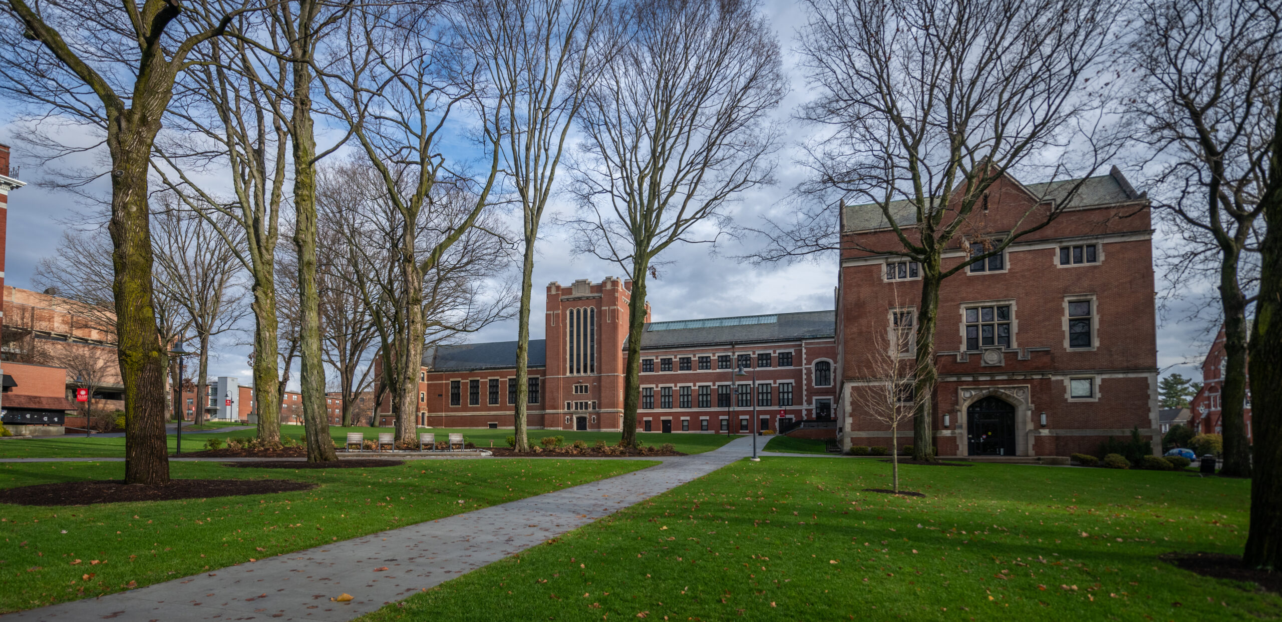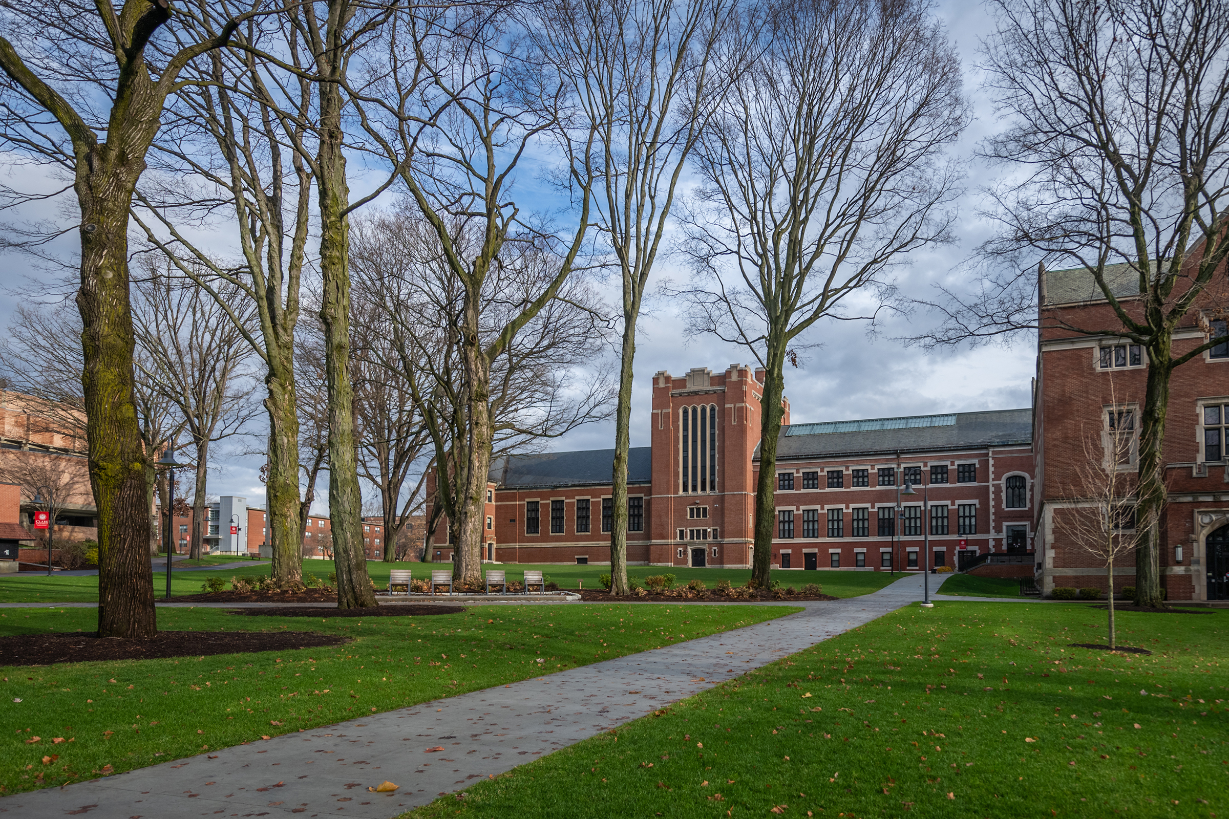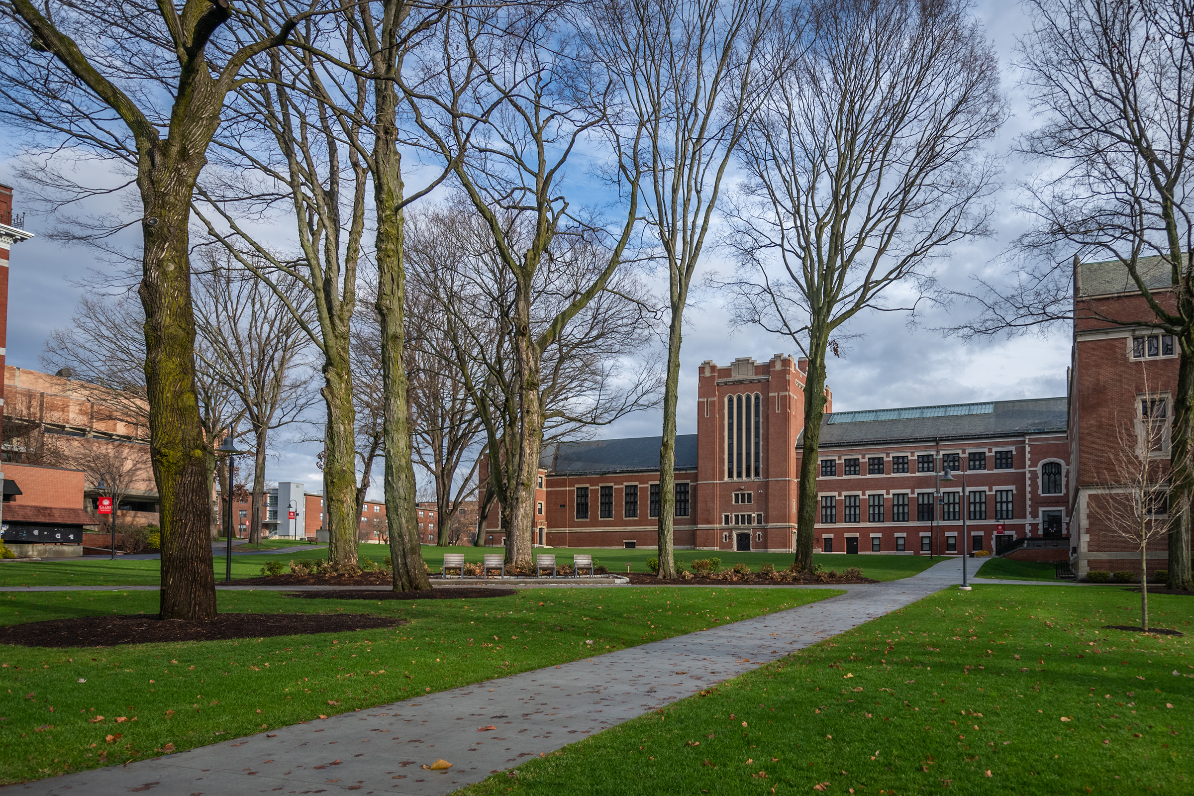 Attached to Atwood Hall is the Jefferson Academic Center, home to the Geography, Political Science, History, and Sociology departments, as well as Jefferson 320, a large auditorium often used for showing films. Outside of Jefferson, the Campus Green is Clark’s most popular outdoor space, where you’ll find snow people in the winter and students studying or tossing a frisbee in the spring.