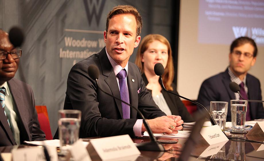 Edward Carr speaks at the Woodrow Wilson International Center for Scholars in Washington. At a separate event, he received the USDA’s Abraham Lincoln Honor Award for Contributions to Global Food Security. (Photo courtesy of the Wilson Center)