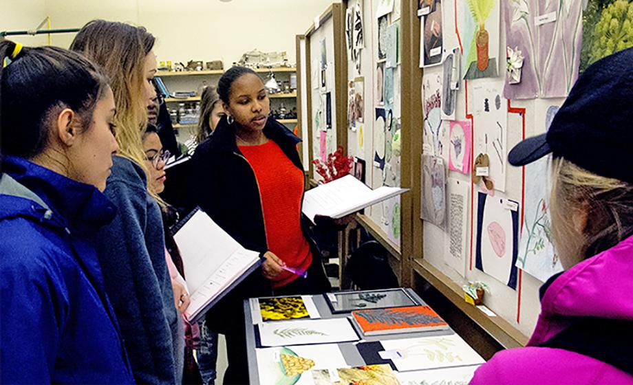 “I really appreciate getting to see that biology can be an artistic and creative experience,” said psychology major and biology minor Sofia Noguer ’19, as she and her classmates gathered around the art during an April 7 lab session.