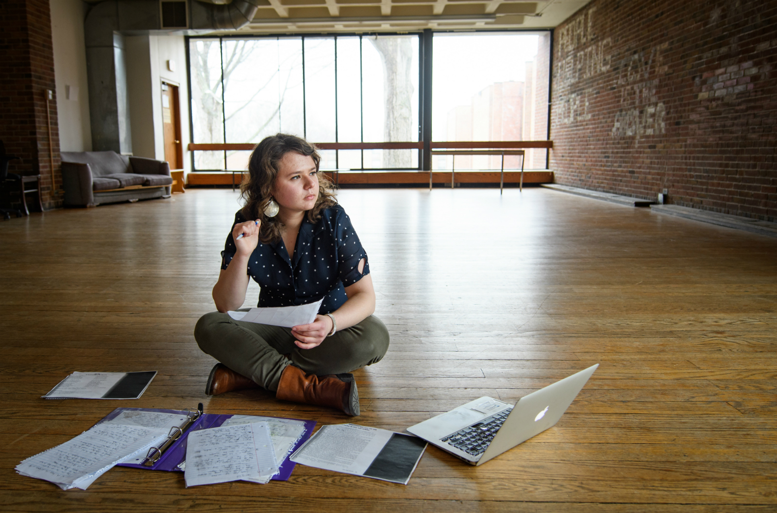 Raechel took a set of required core courses that provided a framework for her path. She then expanded into her preferred territories of playwriting, acting and producing, enrolling in Playwriting I with Gino DiIorio, professor and director of Clark’s theatre program, who became a mentor and her faculty adviser. DiIorio calls her a “fearless writer.” Raechel advanced to Playwriting II and wrote her first play “The Beef Stick Boys,” a show that premiered at the 2015 New Play Festival. “It was so empowering to hear our scenes read aloud, workshopped, and ultimately performed in PlayFest 2015. I wouldn’t be the same writer I am today without Gino’s support or without the help of the Visual and Performing Arts Department and Clark University Players’ Society, which helped produce the play,” she says.