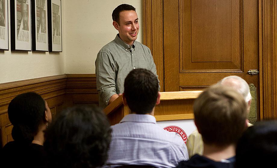 “What can you do with an English degree?” is a question that Clark University’s English Department encourages students to explore, especially by meeting with alumni who return to campus to talk about their careers. At a recent gathering in the department’s Anderson House, Scott Zimmerman ’99 relayed what happened when he paired a B.A. in English with his passion for sports, an interest he’s held since his teenage years in Brooklyn: He ended up overseeing multimillion-dollar global merchandising accounts and strategies for top brands like Nike, New Balance and Carhartt.