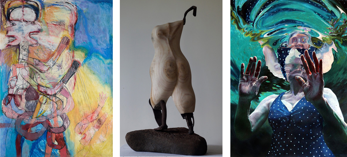 A sampling of artwork from the “Bodies” exhibition, on display online and in the Schiltkamp Gallery.Clark University’s Higgins School of Humanities will conclude its yearlong symposium on “Bodies” with an exhibition featuring work by 15 artists that explore bodies in their many forms and the aspects of life that affect them.