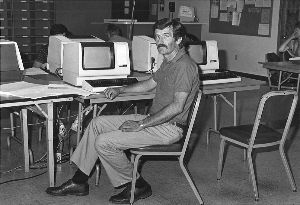 Professor John Blydenburgh sits in a Clark University computer lab in the early 1980s.Born in Islip, New York, Blydenburgh played sports and performed in school plays throughout high school. The pinnacle of his high school athletic career was during a baseball game against rival Bridgehampton School, when he struck out Carl Yastrzemski. Although he was recruited by the Brooklyn Dodgers farm team, he didn’t try out; instead, he joined the U.S. Air Force, serving for three years.