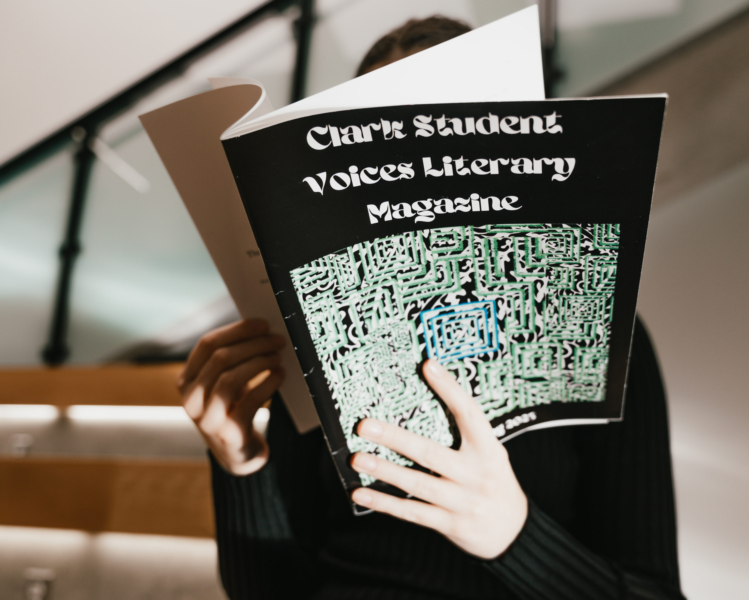 Clark Student Voices Literary Magazine meetings are generally announced via Instagram, and anyone interested in participating is welcome. A variety of committees, readers, and editors, select work for the publication. The magazine can be found in the Anderson House.