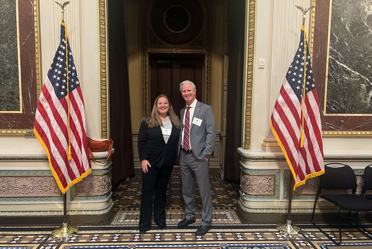 Professors Abby Frazier and Dave White standing inside a White House hallway