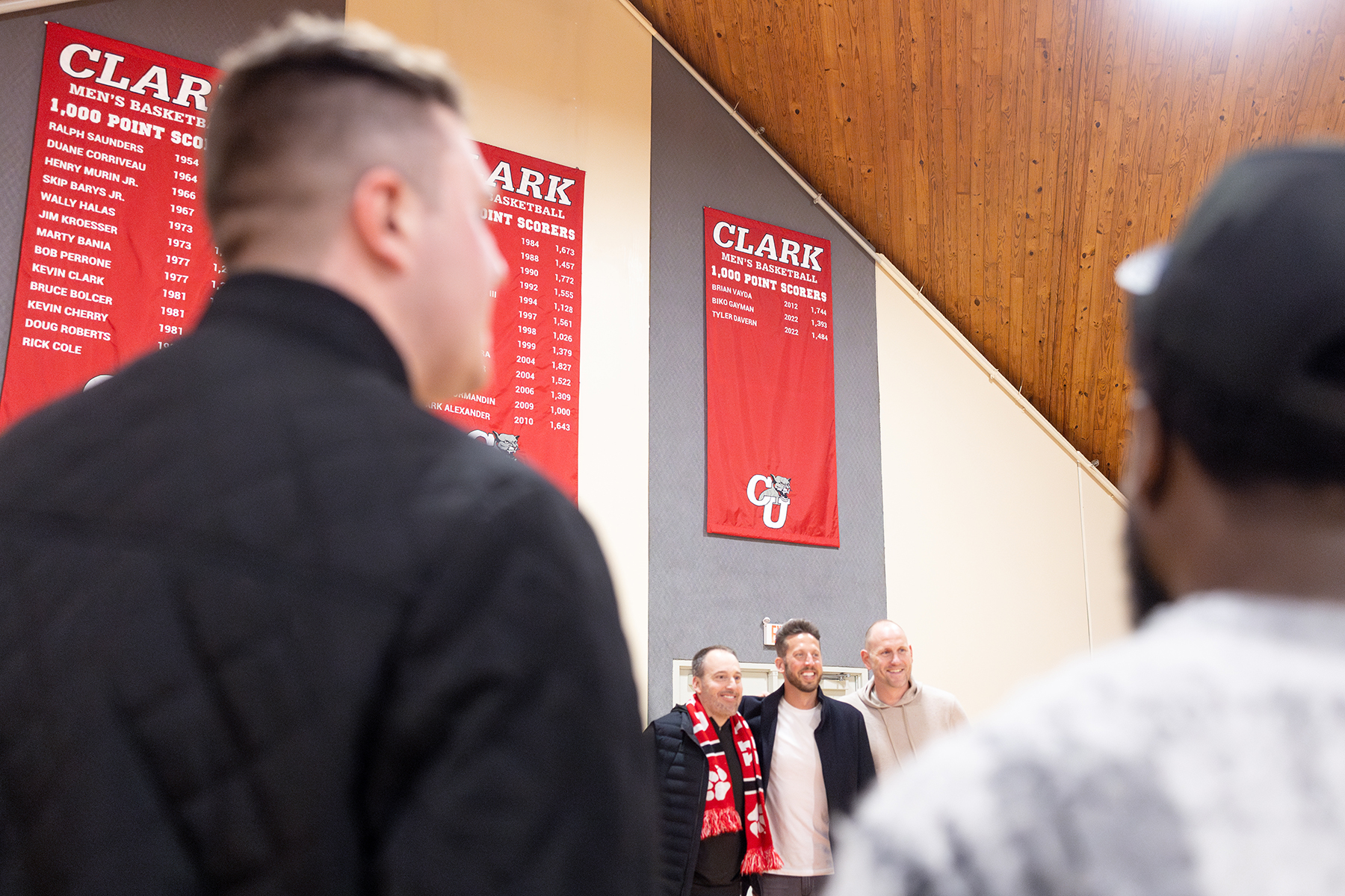 On Saturday, January 25, Clark honored the players who scored with greater precision and volume than any others in school history with the raising of two banners celebrating the men’s and women’s players who scored at least 1,000 points during their Clark careers.