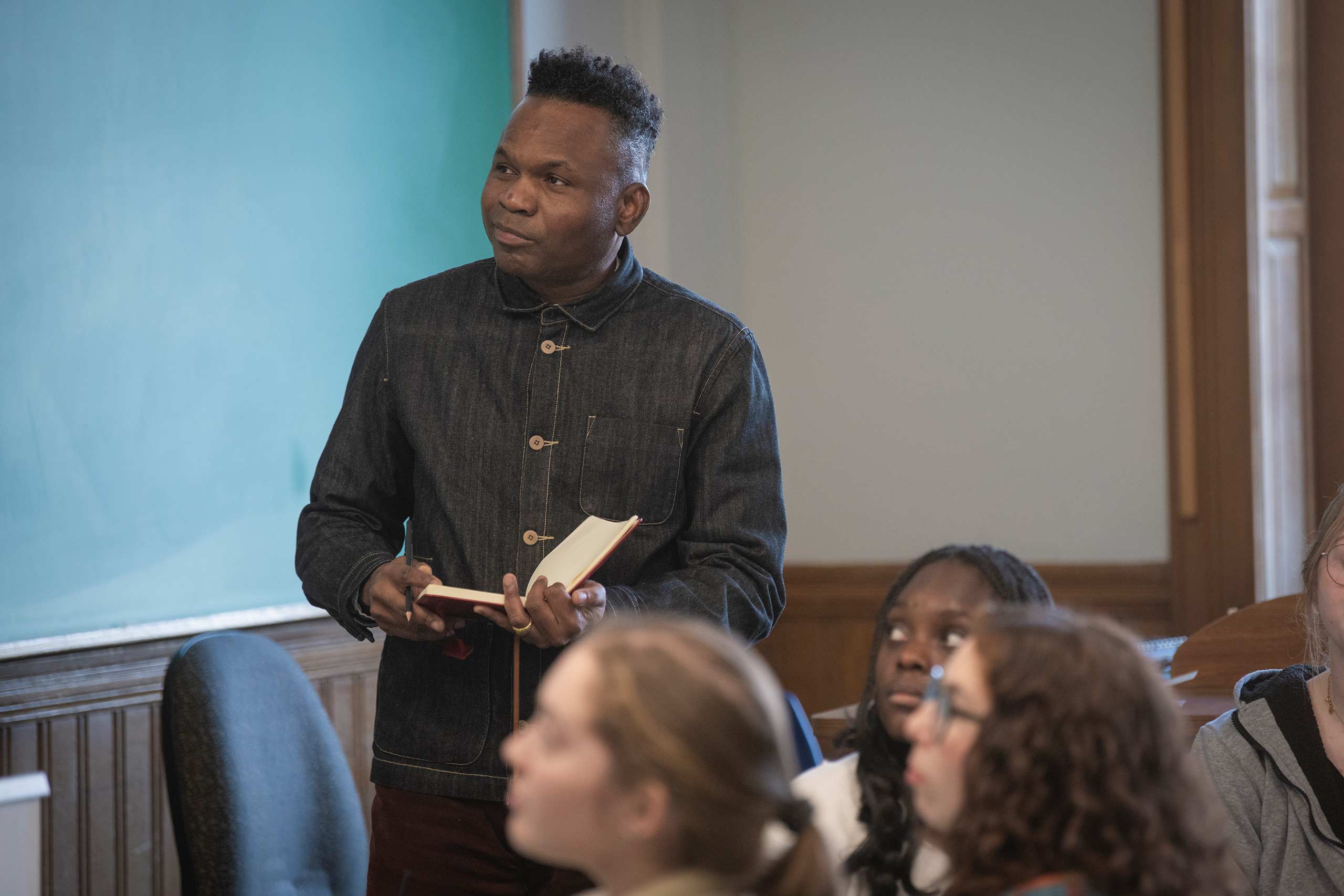 Raphael Rogers, professor of practice in the Education Department, leads a class at Clark.