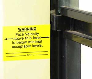 A chemical fume hood is a partially enclosed workspace that is exhausted to the outside. When used properly, hazardous gases and vapors generated inside the hood are captured before they enter the breathing zone. Fume hoods are tested by the safety office. If you suspect that the hood in your lab is not working, place a “broken hood” sign on the hood sash and call Frank Abell at (x7280).