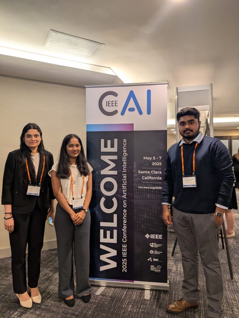Recently, our Data Analytics graduate students made a significant impact at the IEEE Conference on Artificial Intelligence (CAI) 2025, held in Santa Clara, California. They delivered two presentations that highlighted innovative research in healthcare AI.